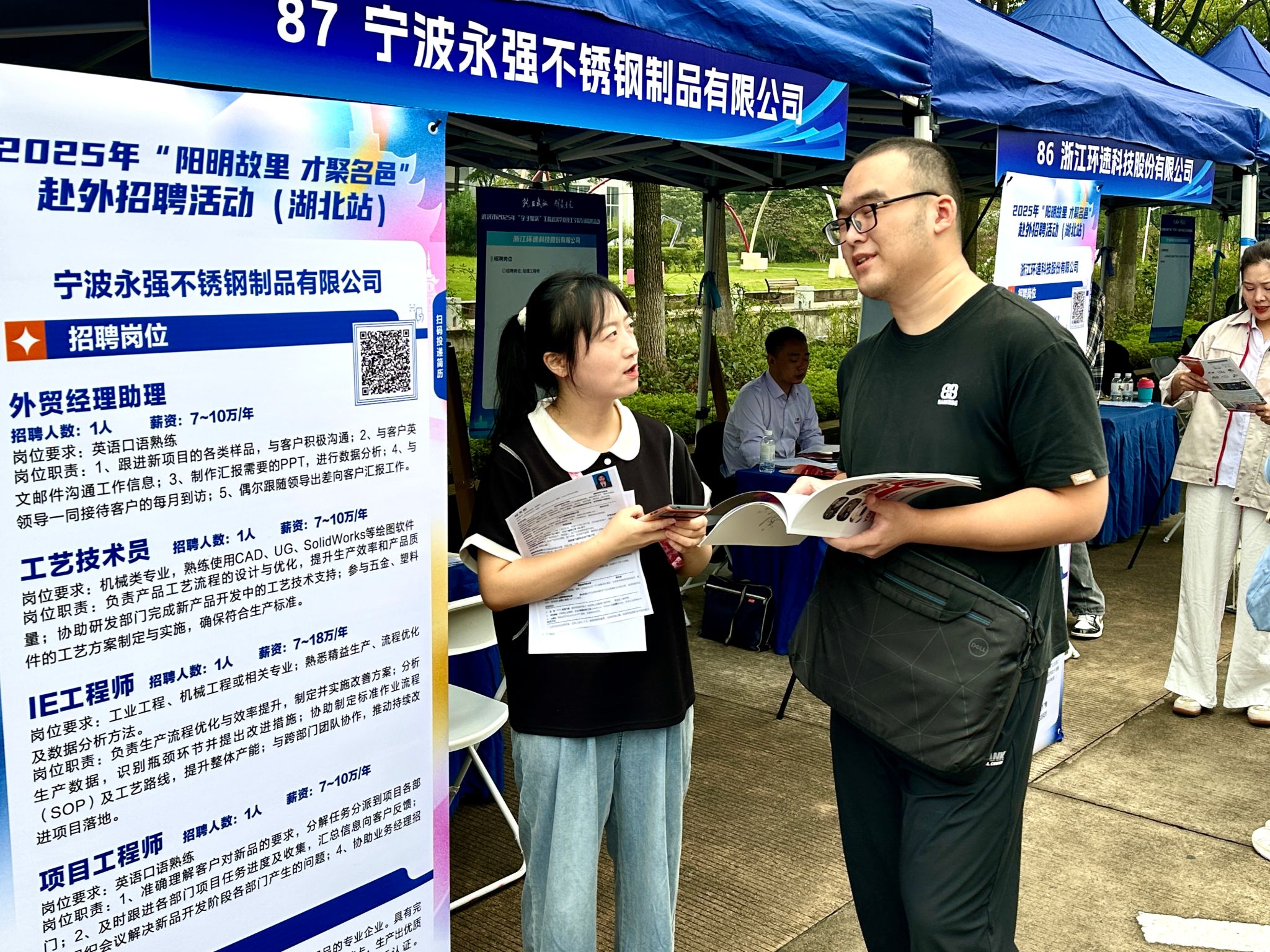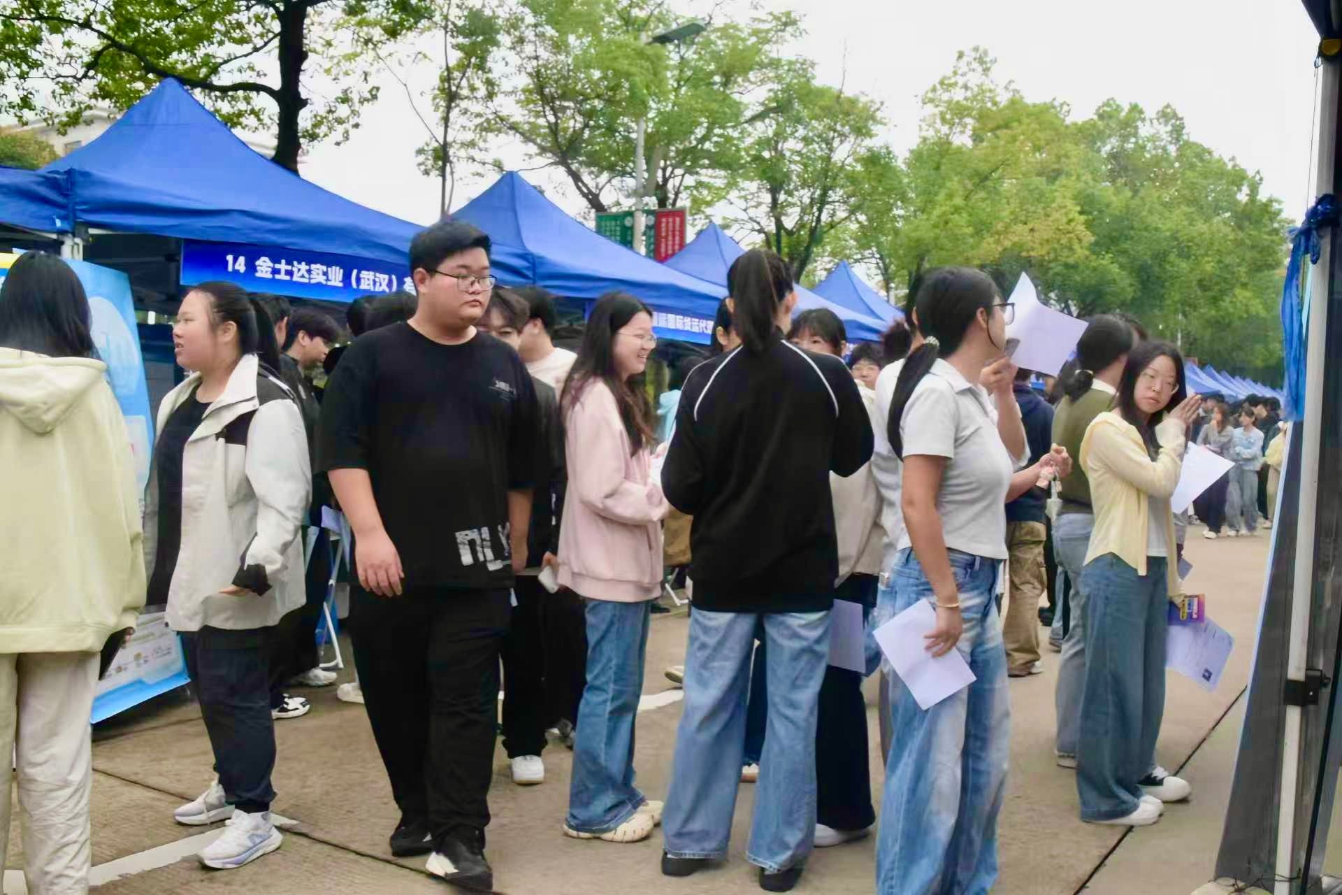 本次双选会由湖北省教育厅主办,我校与武汉市人力资源和社会保障局、江岸区人力资源和社会保障局、余姚市人力资源和社会保障局共同举办。招聘会采用“线下+官方视频号同步带岗”模式,官方视频号“直播带岗”准时开播,主播实时解答线上学子关于企业、岗位、落户、薪酬、晋升通道等问题,吸引近千人次线上围观。