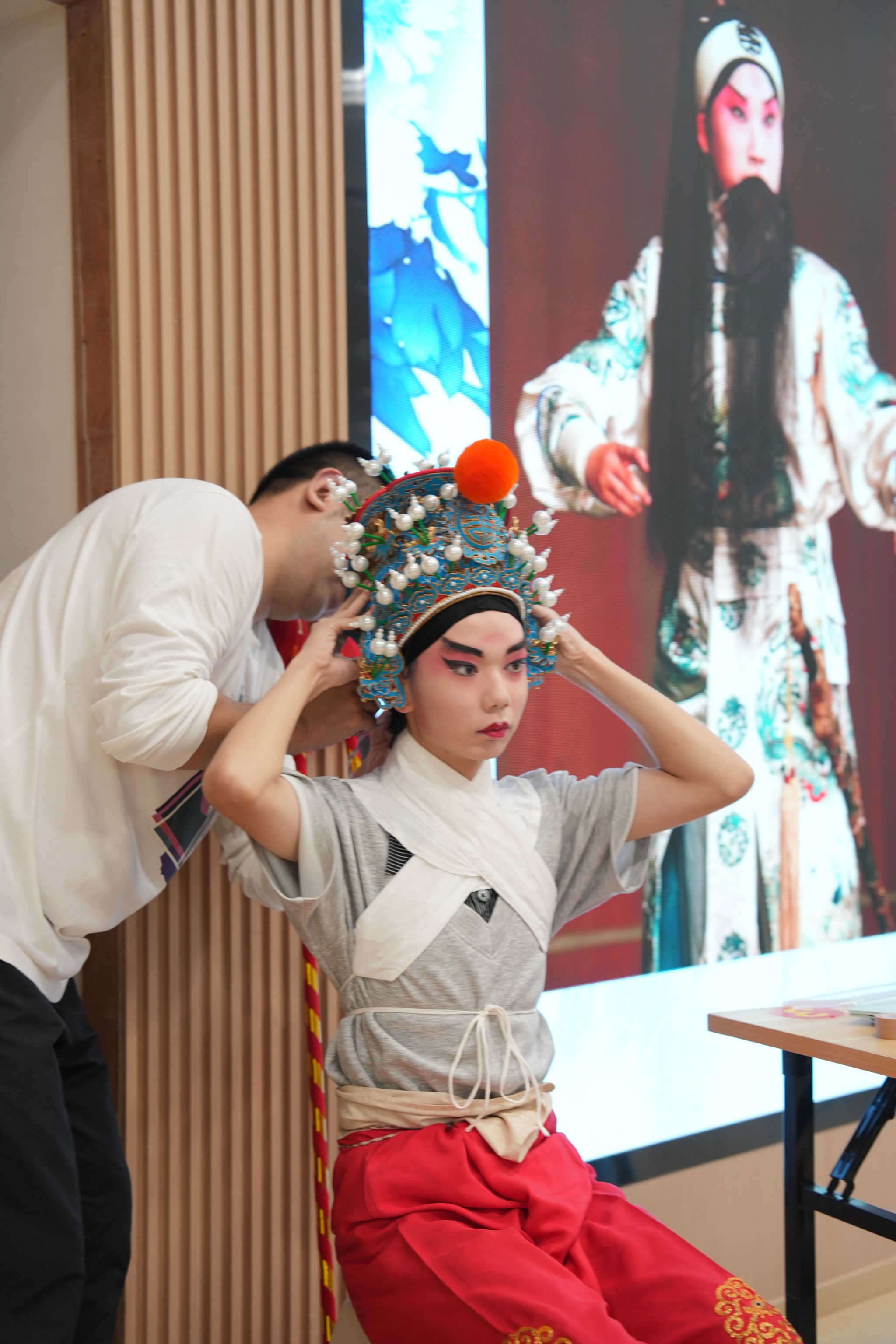 互动环节将现场气氛推向高潮,同学们纷纷上台试穿戏服、学习动作,在亲身体验中感受传统艺术的魅力,整场活动掌声不断。