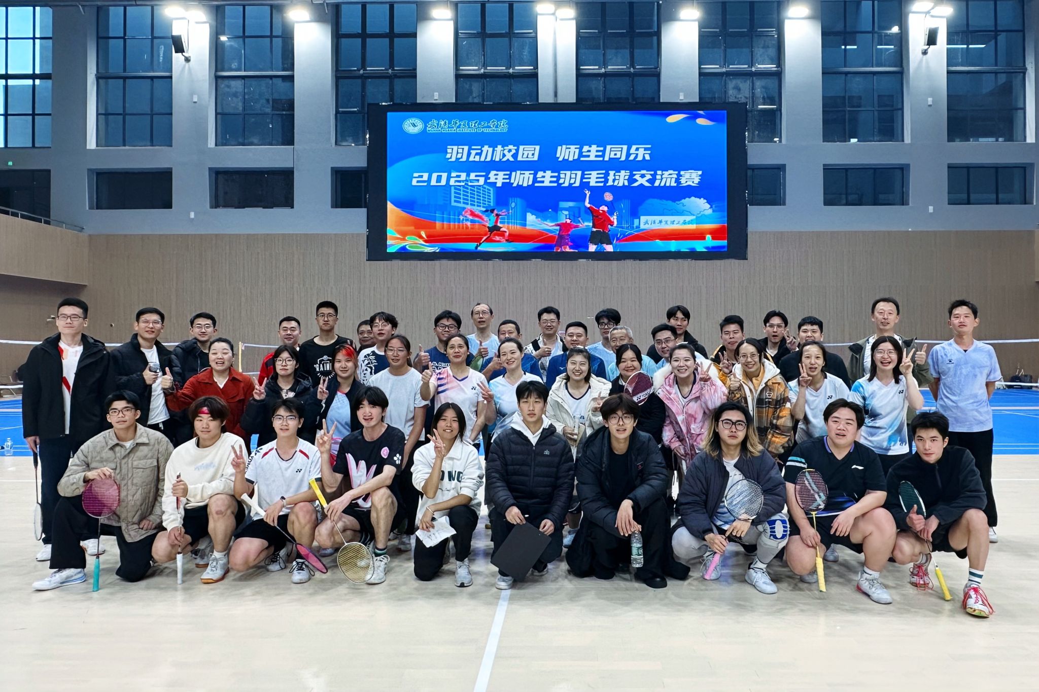 比赛结束后,教职工代表队还与学生们进行了一场别开生面的“羽动校园·师生同乐”友谊交流赛。师生同场竞技、相互切磋,在一挥一拍间拉近了彼此距离,现场气氛热烈融洽。