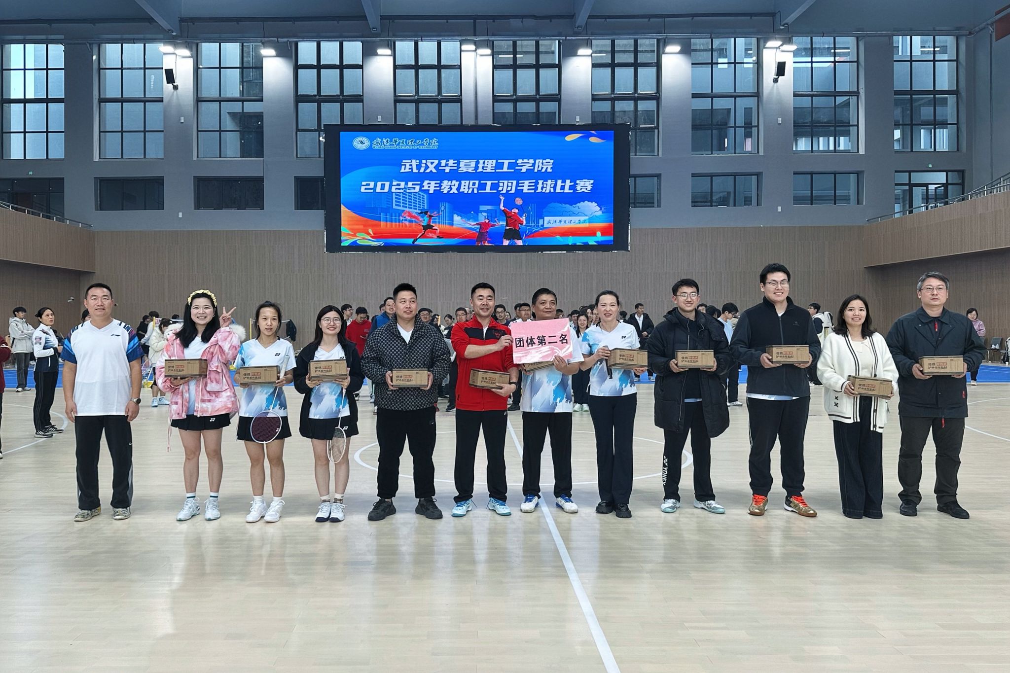 11月22日,我校梧桐湖校区羽毛球馆迎来了2025年教职工羽毛球比赛。本次比赛由校工会主办,体育学院、梧桐湖校区管委会、羽毛球俱乐部及校团委联合承办,是梧桐湖校区羽毛球馆建成以来首次举办的大型教职工体育赛事,吸引了由机关分工会、图书馆分工会及各学院分工会组成的8支代表队积极参与。