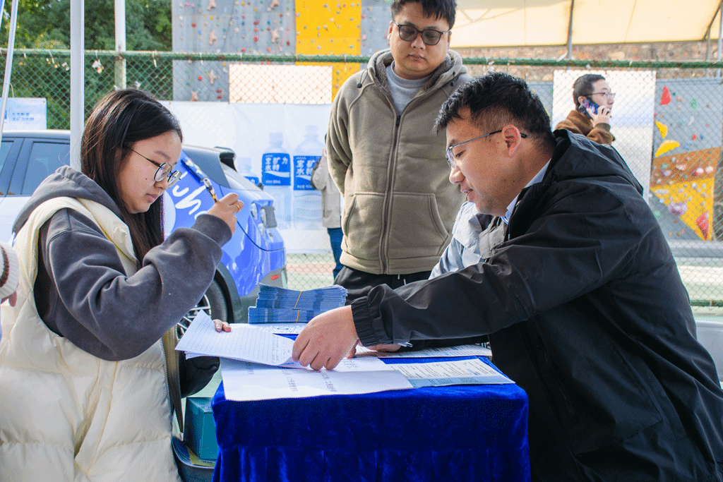 本次双选会亮点纷呈。在互动体验方面,蔚来汽车将新款电动车开进校园,推出“校园试驾”活动,学生完成试驾即可获赠限量水杯,现场排起长队,成为全场焦点。就业服务方面,学生就业创业指导服务中心设置现场服务点,专员全程驻守,为企业提供全流程会务支持,搭建起企业与学院之间的沟通桥梁,协助安排宣讲及面试场地,并为学生提供一对一简历修改与政策咨询服务,精准解读基层就业补贴、人才落户等举措。