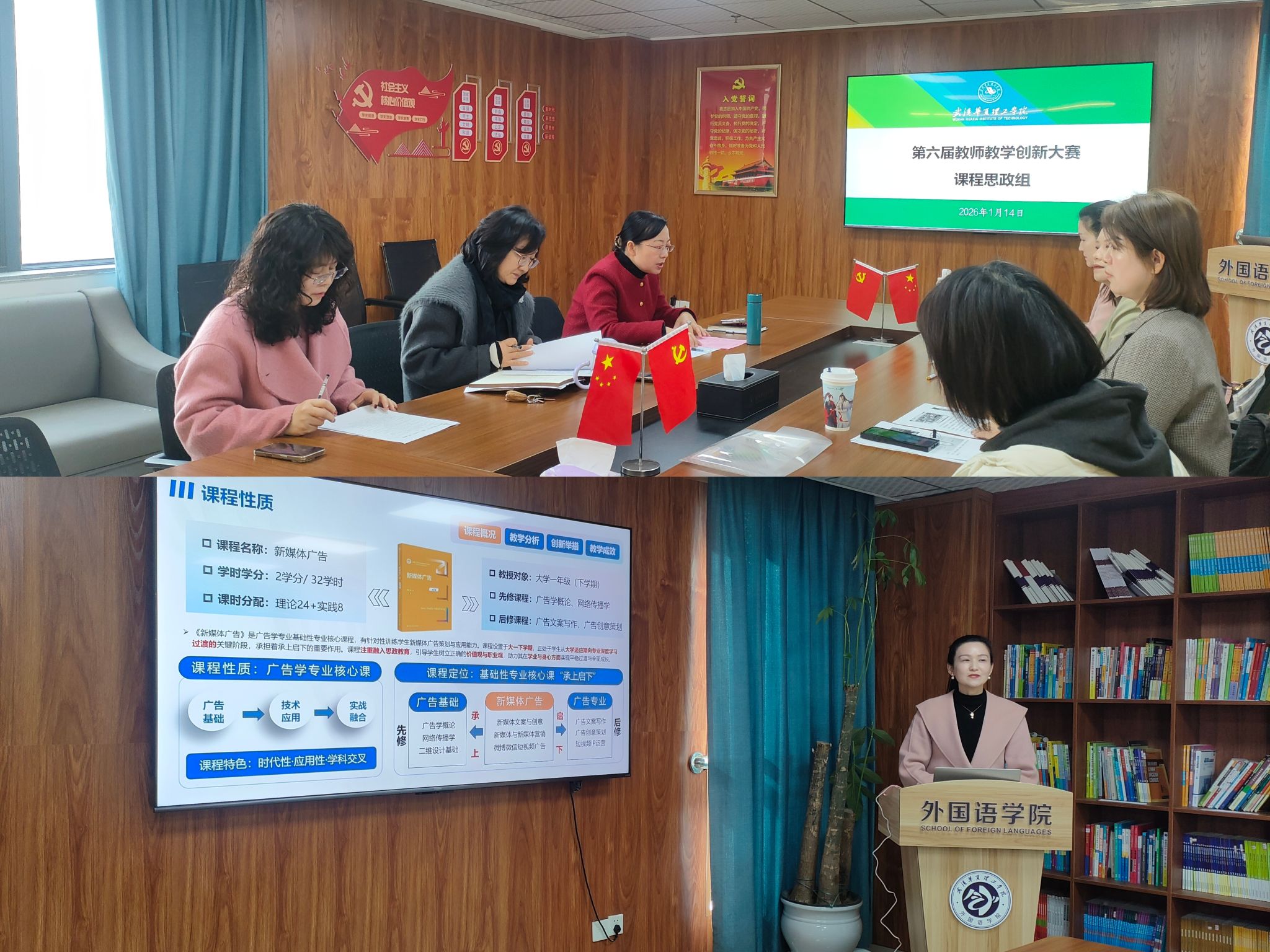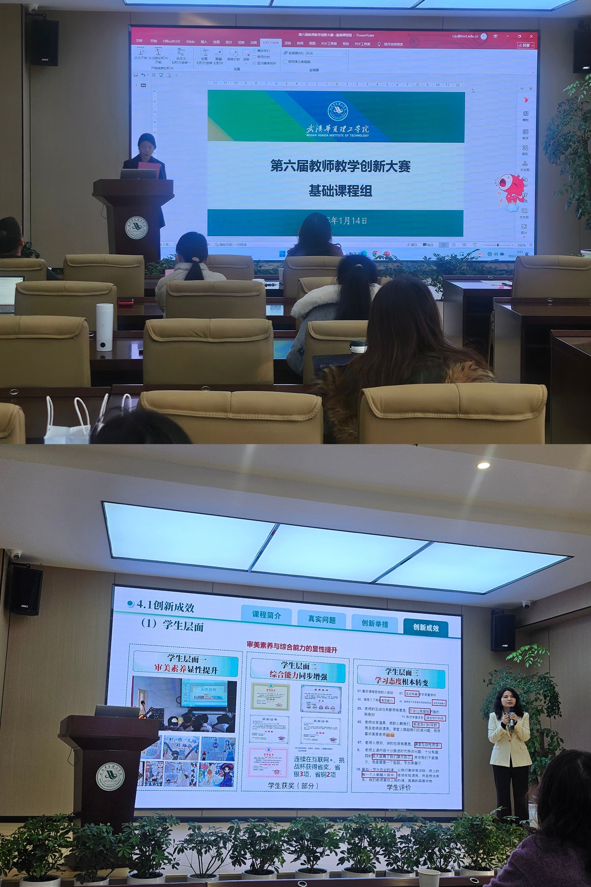 1月14日,我校举行第六届湖北省高校教师教学创新大赛校内选拔赛。全校30个教师(团队)携精心打磨的教学改革方案登台,共同竞逐第六届湖北省高校教师教学创新大赛的晋级资格。本次校内选拔赛以“推动教学创新,培养一流人才”为主题,最终18组教师脱颖而出,进入现场展示环节,在五个不同赛道展现了打破常规、重塑课堂的探索与实践。